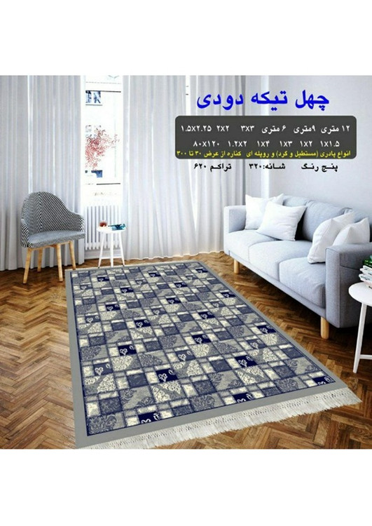 گلیم فرش ماشینی ۴۰۰ شانه آکرلیک کاشان- طرح چهل تیکه دودی
