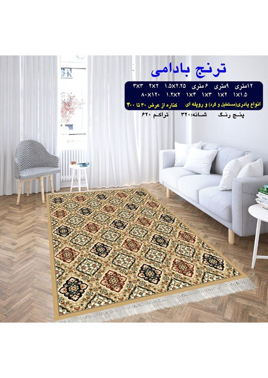گلیم فرش ماشینی ۴۰۰ شانه آکرلیک کاشان- طرح ترنج بادامی