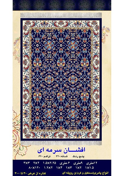 گلیم فرش ماشینی ۴۰۰ شانه آکرلیک کاشان- طرح افشان سورمه ای