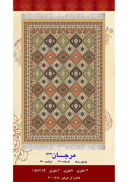 گلیم فرش ماشینی ۴۰۰ شانه آکرلیک کاشان- طرح مرجان جدید