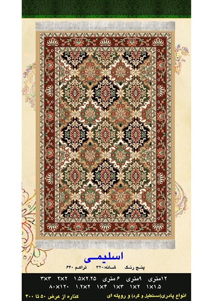 گلیم فرش ماشینی ۴۰۰ شانه آکرلیک کاشان- طرح اسلیمی