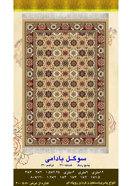 گلیم فرش ماشینی ۴۰۰ شانه آکرلیک کاشان- طرح سوگل بادامی