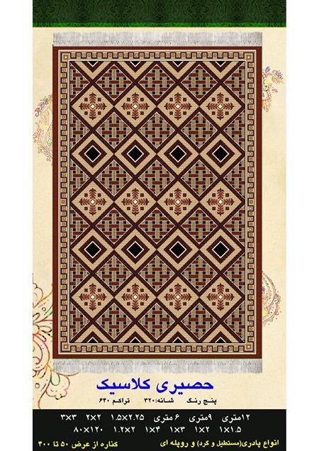 گلیم فرش ماشینی ۴۰۰ شانه آکرلیک کاشان- طرح حصیری کلاسیک