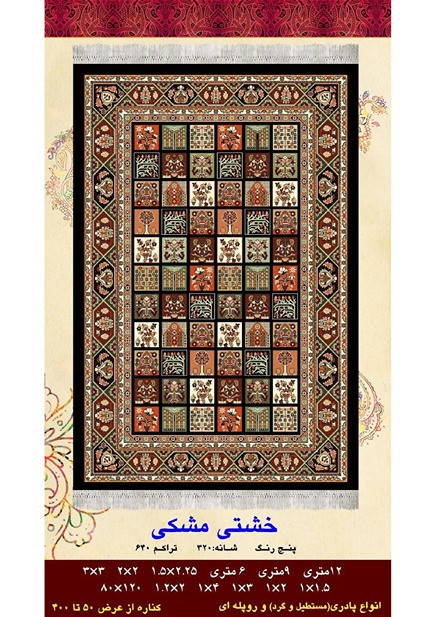 گلیم فرش ماشینی ۴۰۰ شانه آکرلیک کاشان- طرح خشتی مشکی